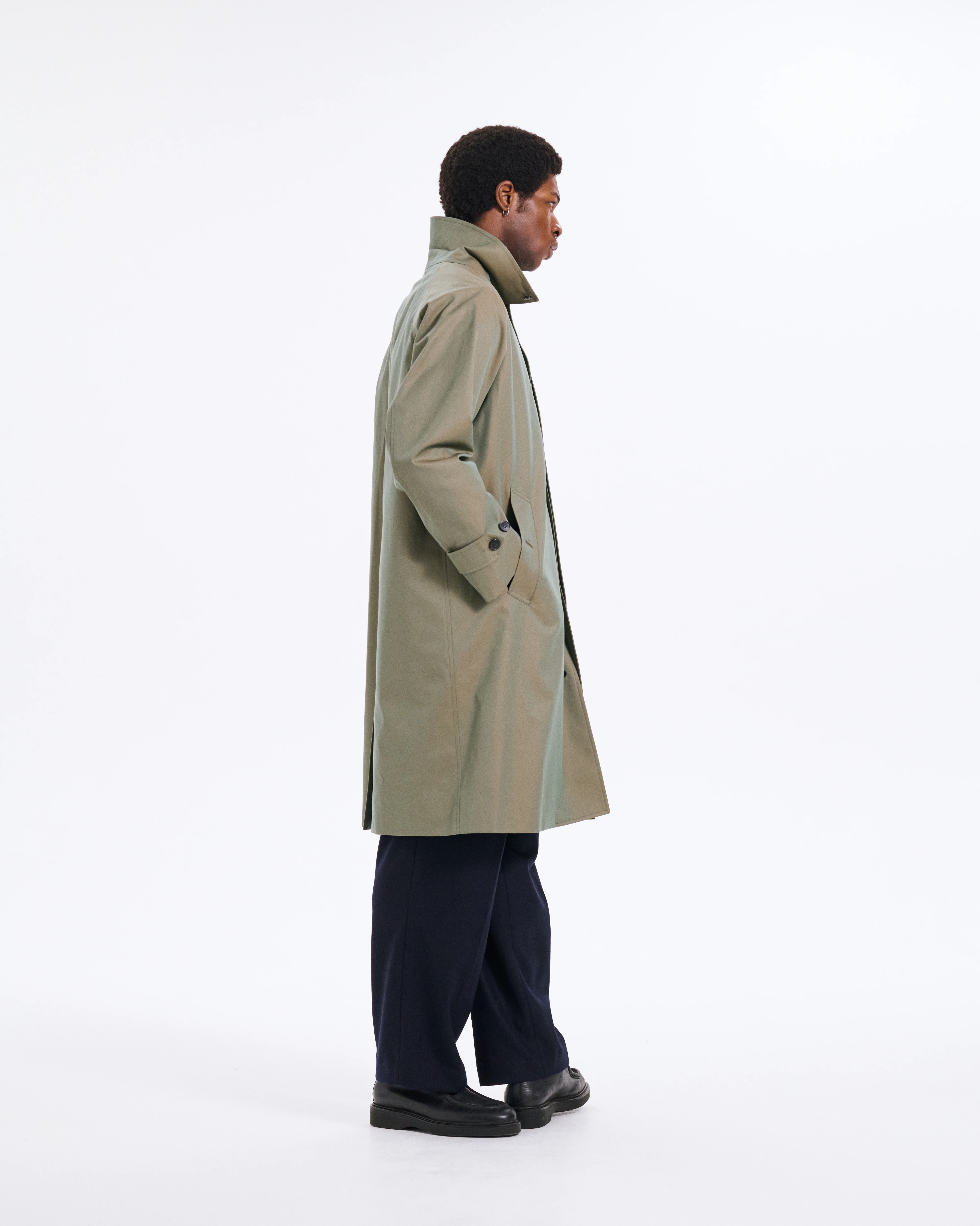 The New Balfield Coat is a raglan sleeve car coat, with detachable lining for year-round use. Using cotton gabardine fabric gives this coat a water resistant finish and the lining keeps the warmth in.