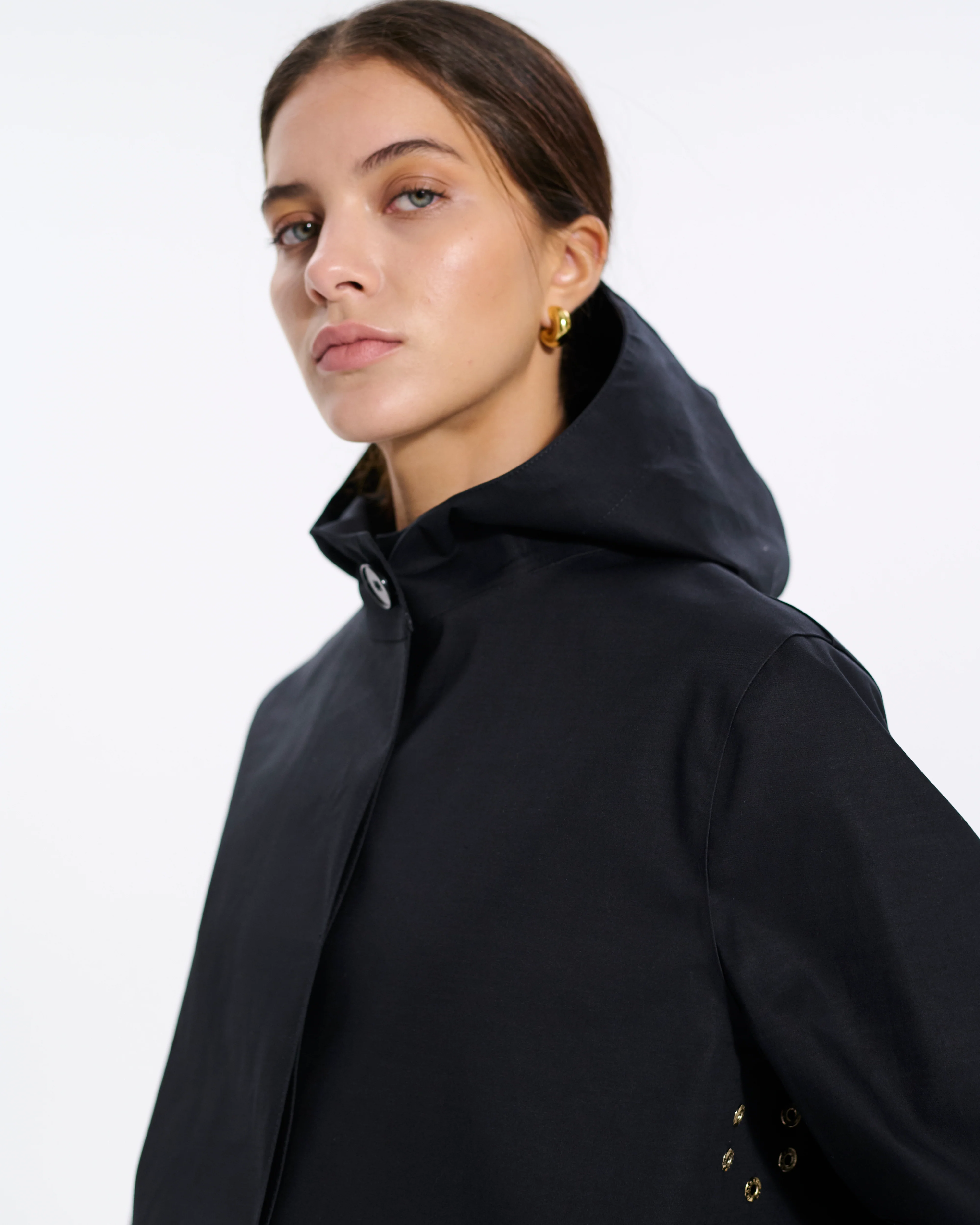 With a classic and minimalist Hiyoku design, the Watten coat offers a clean silhouette with added protection from the elements with its classic hooded look. The coat has been crafted with care for maximum functionality, featuring our famed rubberised fabric for a complete waterproof finish, underarm eyelets for breathability, and hand-taped seams for total weather protection.
